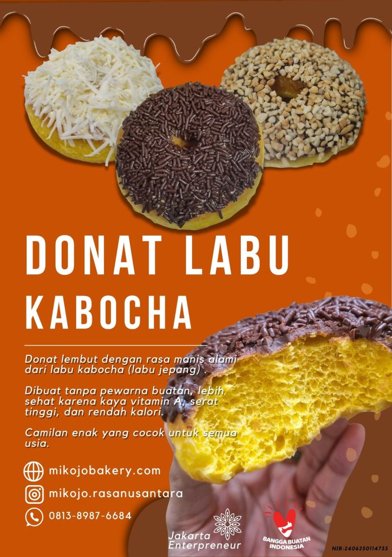Donat Labu dari Miko.Jo dibuat dari labu kuning segar, butter premium, dan bahan alami tanpa pengawet.Teksturnya super lembut, moist, dan punya aroma khas yang menggugah